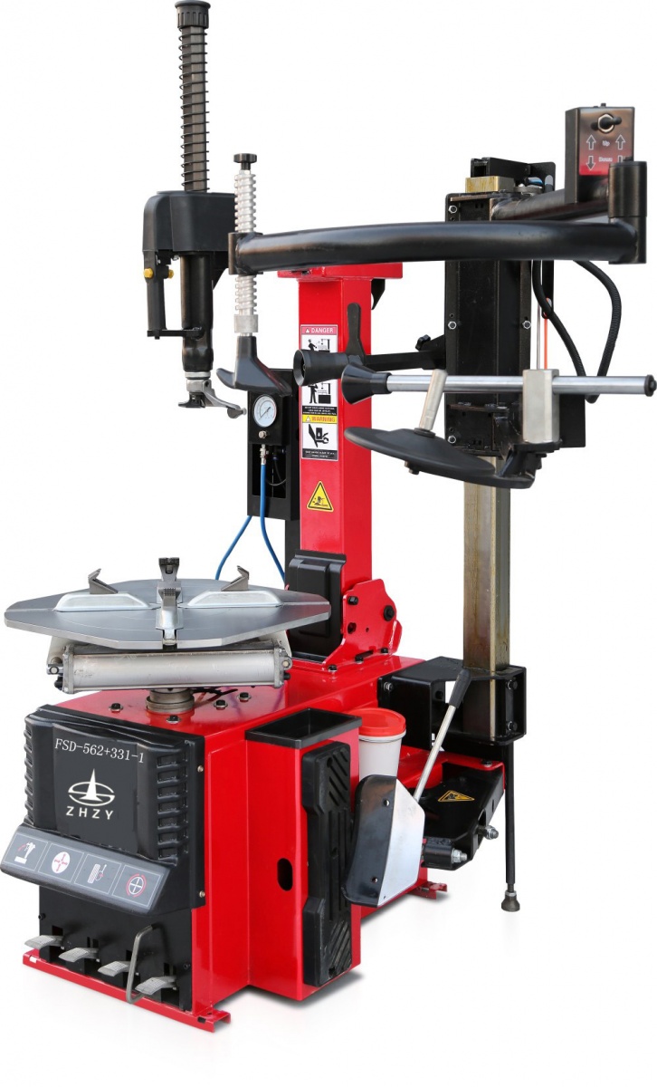 本品为自动后倾式扁平轮胎拆装机,配有自动摆臂式助力装置,气动锁紧装置。